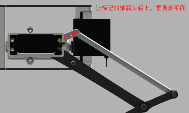 调整到主动轴结构与舵机平行或者垂直即可,如下示意图,因四只腿结构一样,以一只腿为例,第一个舵机,