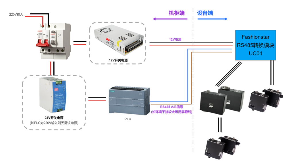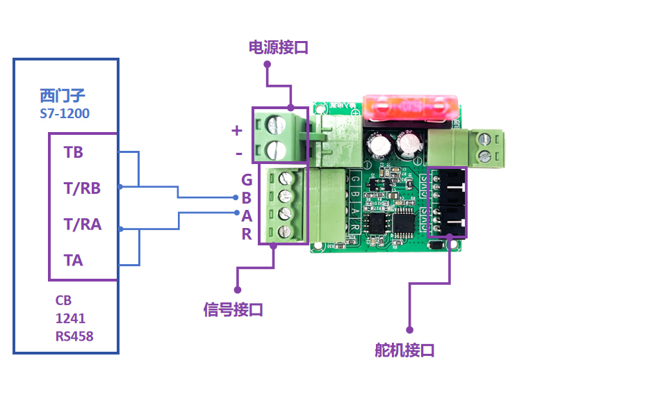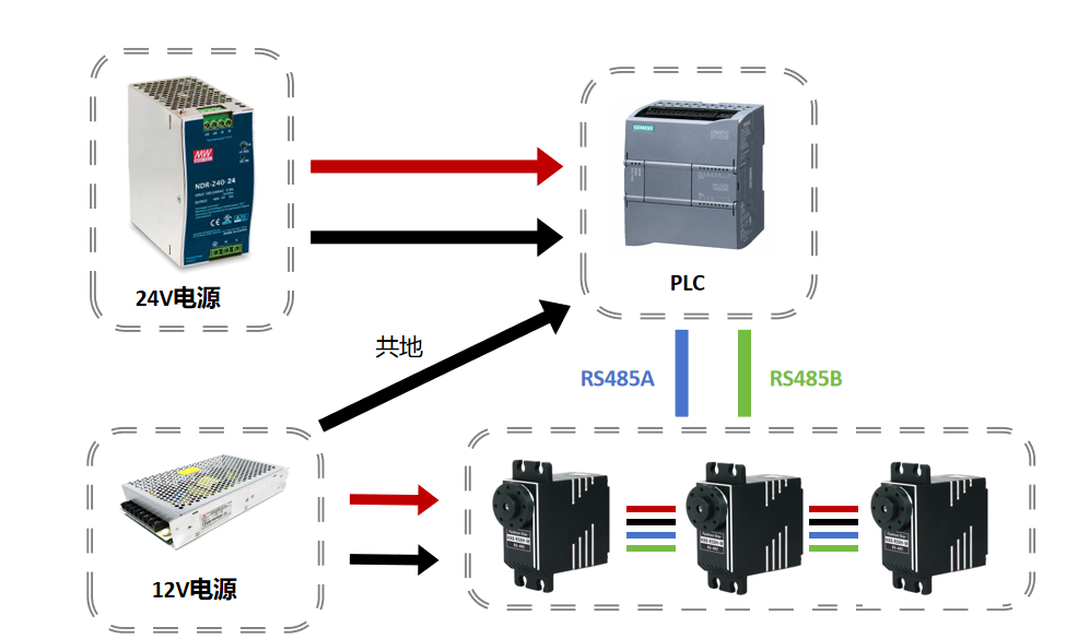 | 电源-(需要和PLC共地) | RS485舵机- |