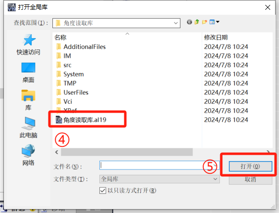 ①点击软件右侧“库”,打开‘’全局库‘’,选择.al19尾缀的文件打开